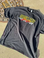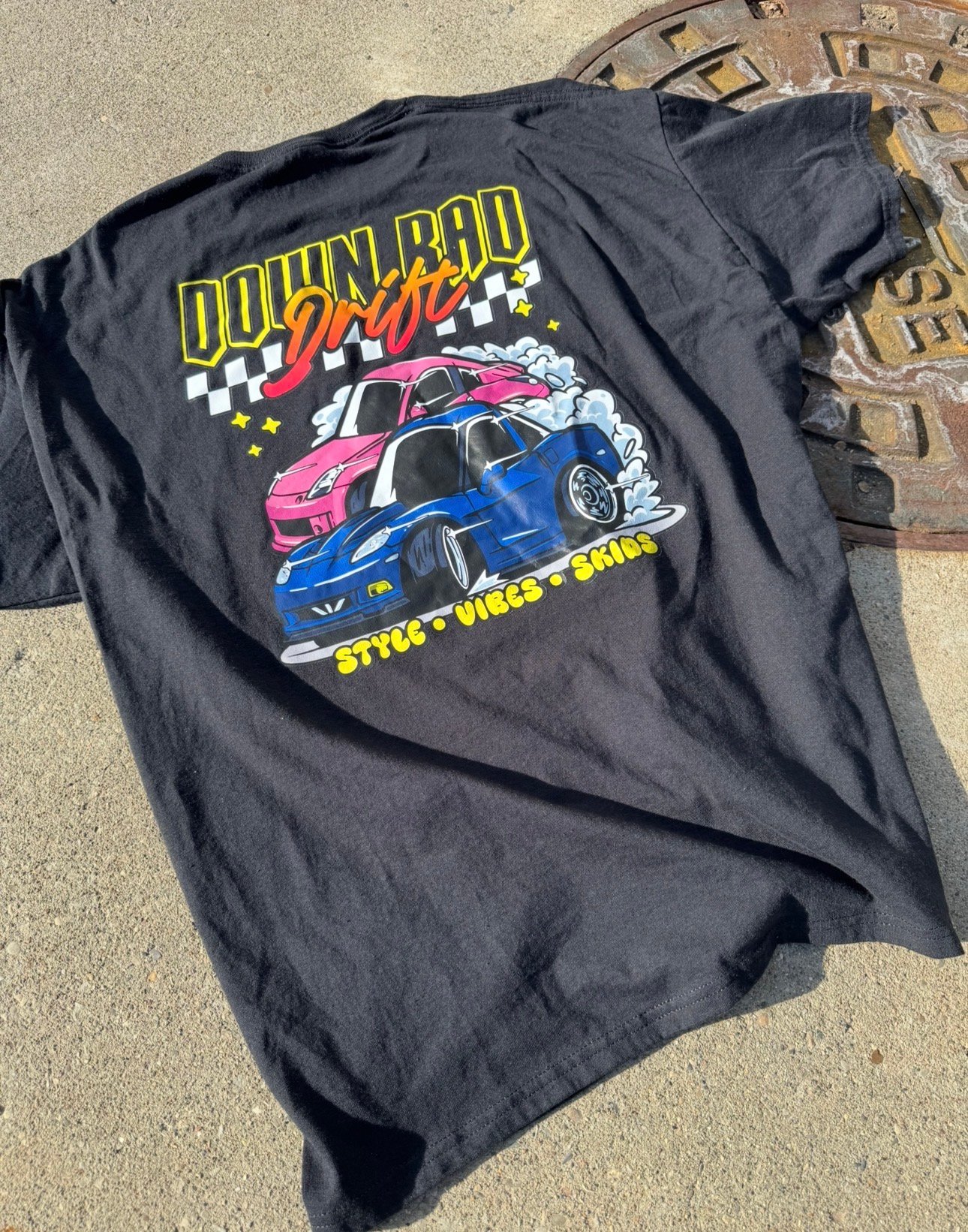 Front and back designs printed on a black 50/50 blend short sleeve shirt fits true to size and is very comfortable!