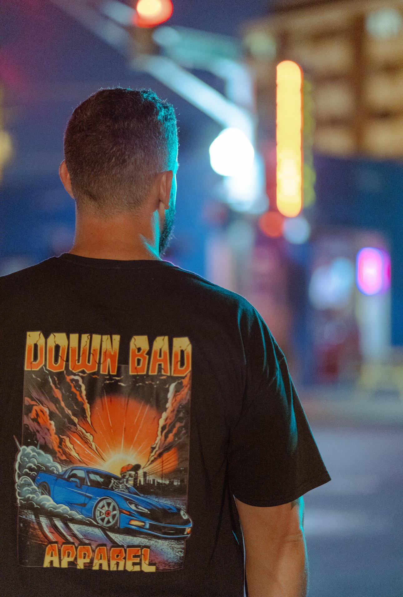 Front and back designs printed on a black 50/50 blend short sleeve shirt fits true to size and is very comfortable!
