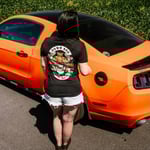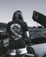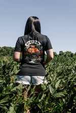 Front and back designs printed on a black 50/50 blend short sleeve shirt fits true to size and is very comfortable!